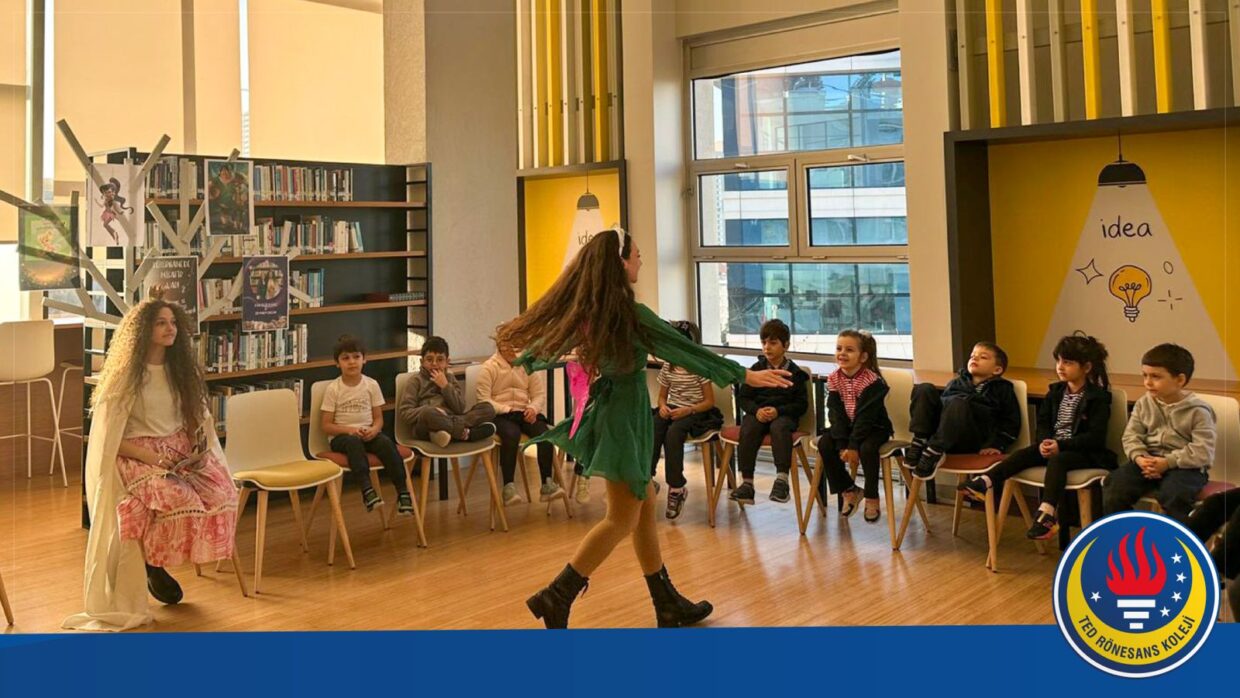 İkinci buluşmamızda ise bu kez miniklerimiz Lise Kütüphanesi’nin misafiriydi. 12. sınıf öğrencilerimiz, bir hikâyeyi canlandırarak miniklerimize interaktif bir okuma deneyimi sundu. Yaş farkı gözetmeksizin kurulan bu anlamlı iletişim köprüsü, okuma kültürünün okulumuzdaki bütünleştirici etkisini bir kez daha ortaya koydu.